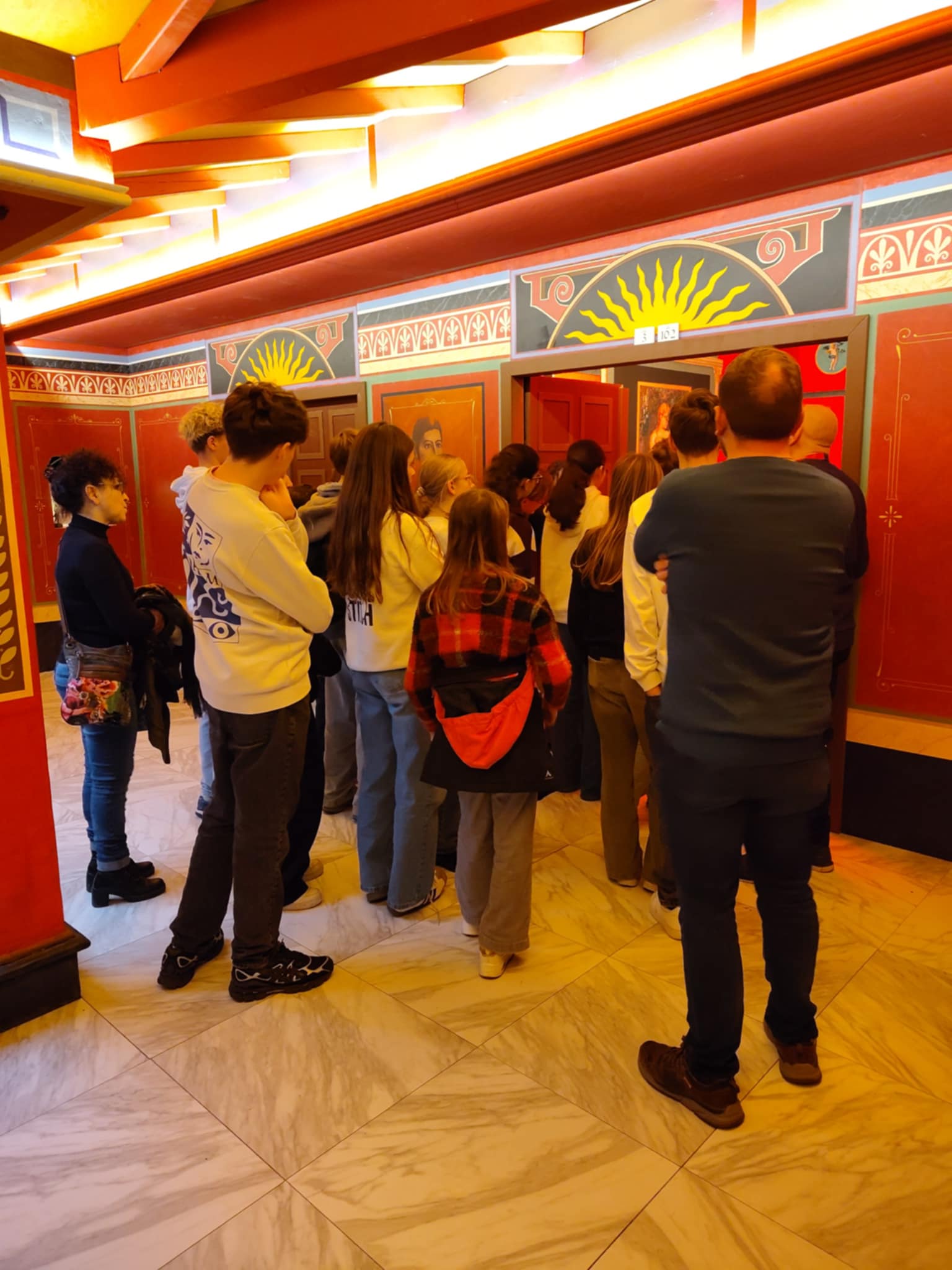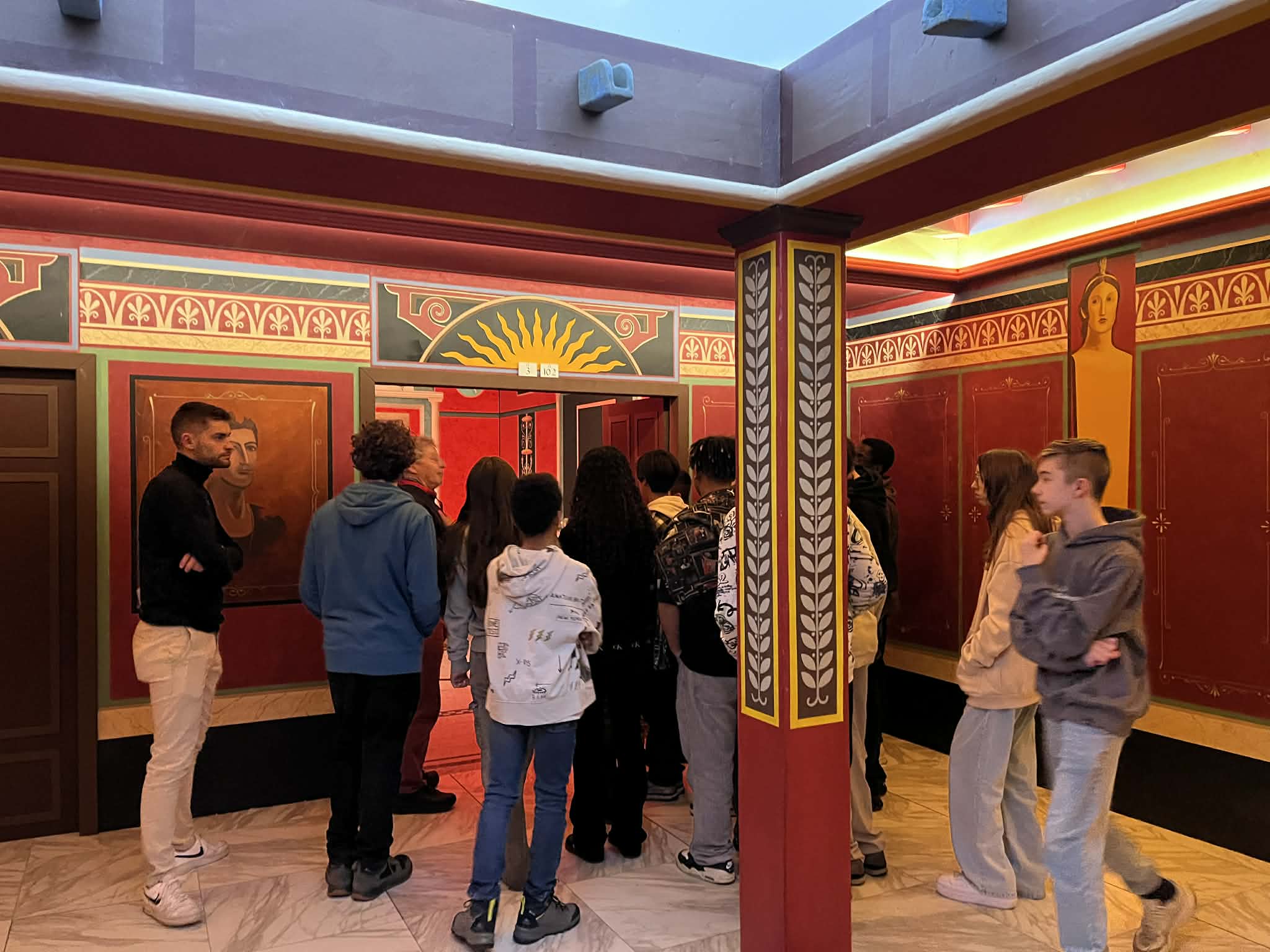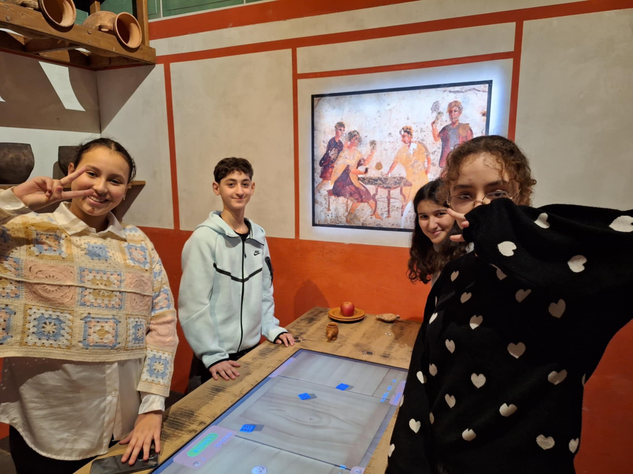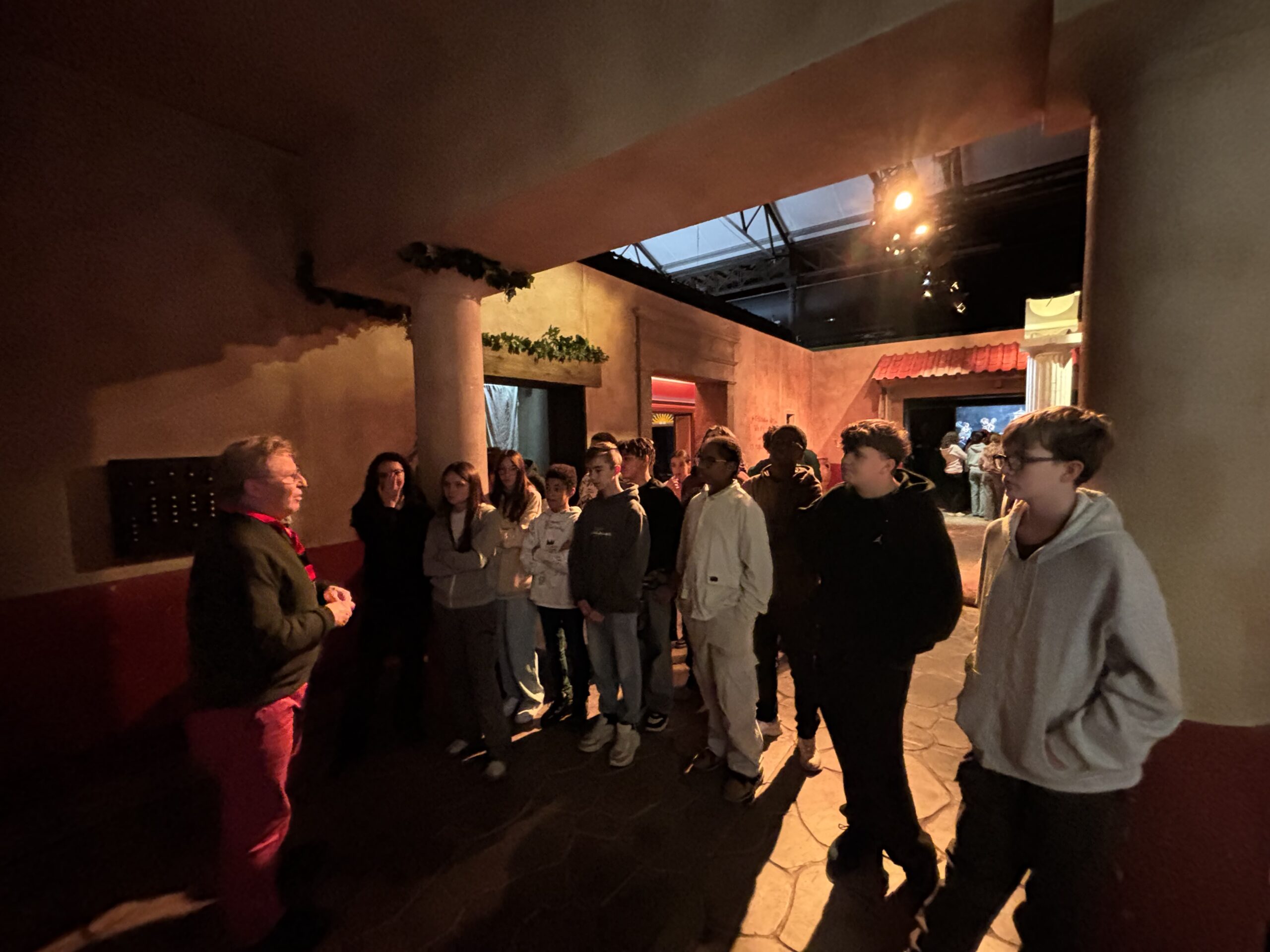 À Pompéi, les élèves ont découvert une reconstitution impressionnante de la célèbre cité romaine avant l’éruption du Vésuve : maisons, rues, thermes et scènes de vie quotidienne les ont transportés en l’an 79.