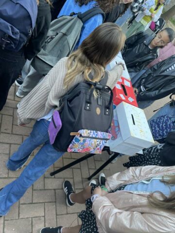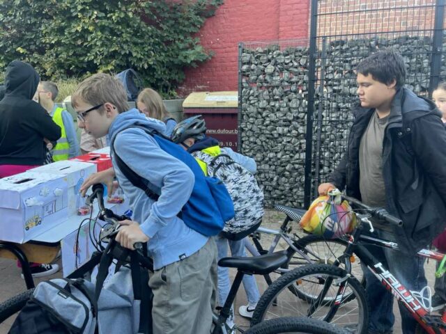 Dès leur arrivée, les élèves ont été accueillis par l’écoteam et invités à déposer un bouton dans la boîte correspondant à leur moyen de transport du jour. Une façon ludique et colorée de visualiser nos habitudes de déplacement.